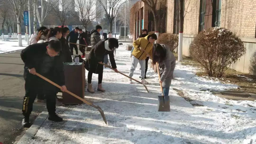 本次扫雪除冰主题党日活动中,支部党员们充分发挥党员先锋带头作用,体现了环境艺术设计系员工党支部的凝聚力,整个劳动的过程中充满了欢声笑语,每个人都乐在其中,扫雪队伍成为了冬日校园一道亮丽的风景线。大家扫雪除冰高亢的热情和团结互助的背影最美!