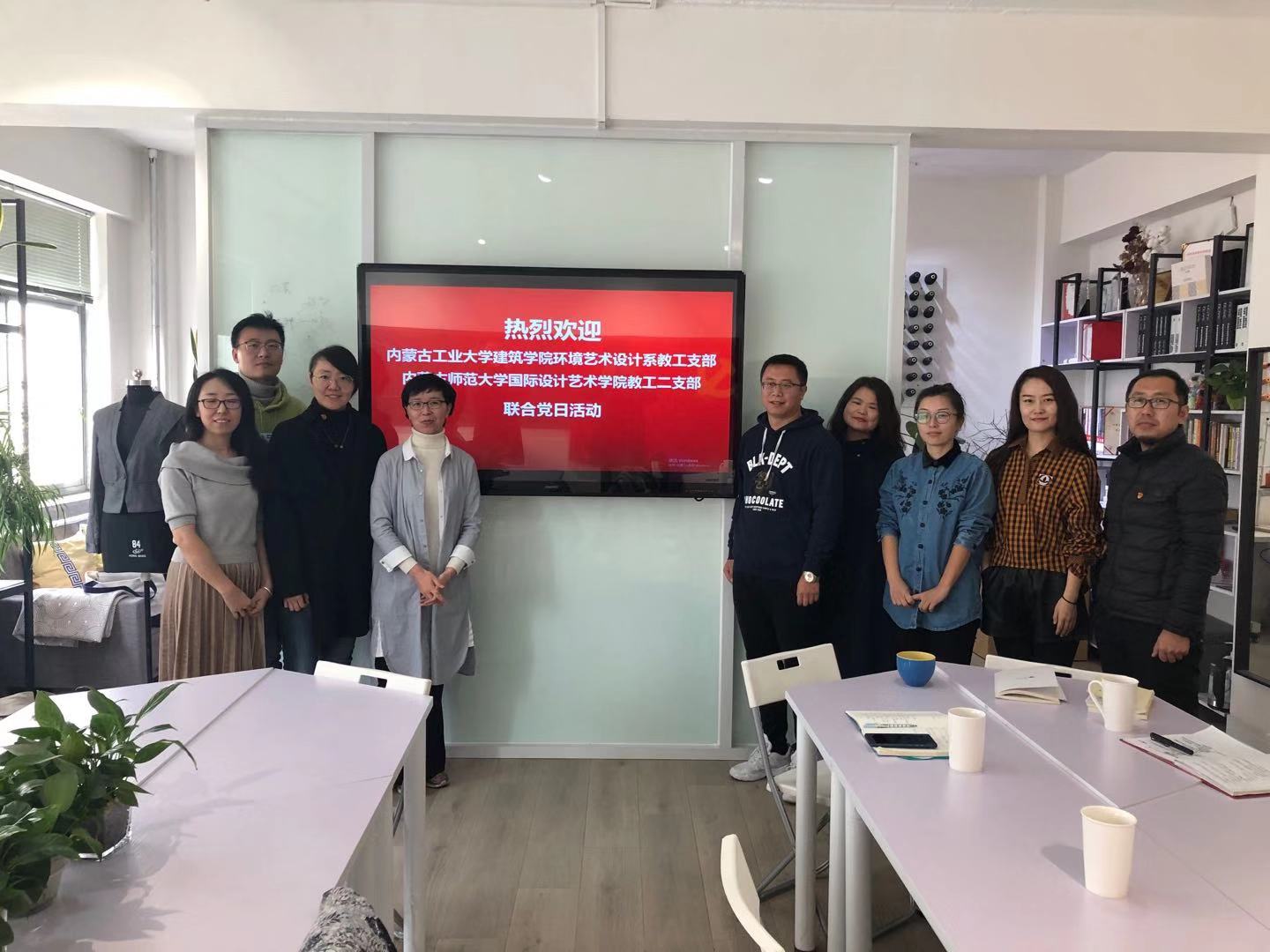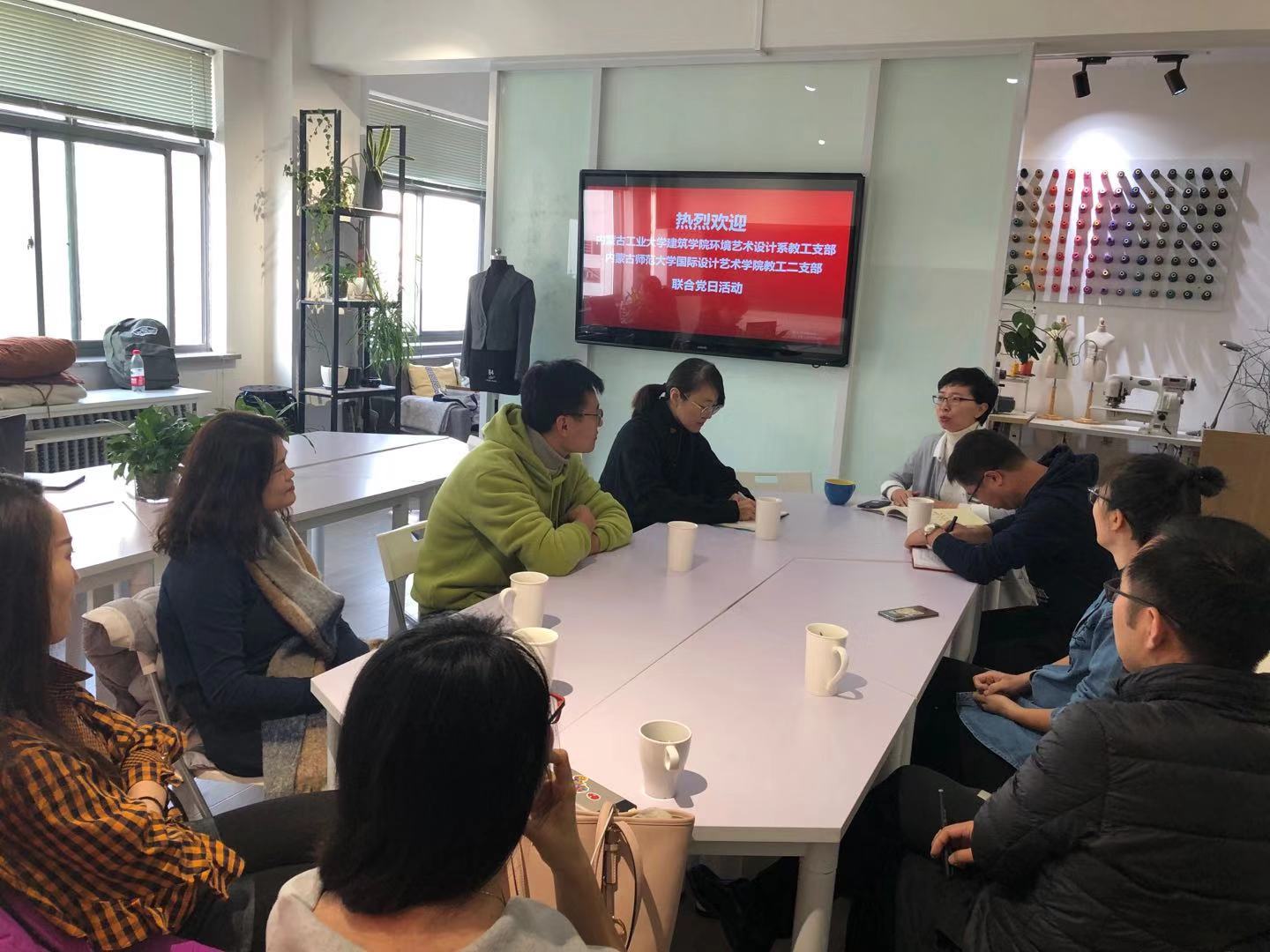 2019年11月22日,在内蒙古师范大学国际设计艺术公司303,太阳成集团官方网站环境艺术设计系教工党支部与内蒙古师范大学国际设计艺术公司教工二支部联合党日活动,太阳成集团tyc122ccvip环境艺术设计系教工党支部艾妮莎、李丽、张岩、刘洁、李楠、刘莹、邹德志、孟春荣、薛宇共九名支部党员参加。