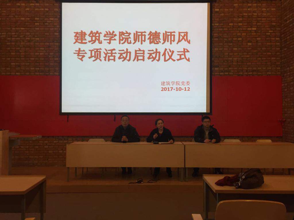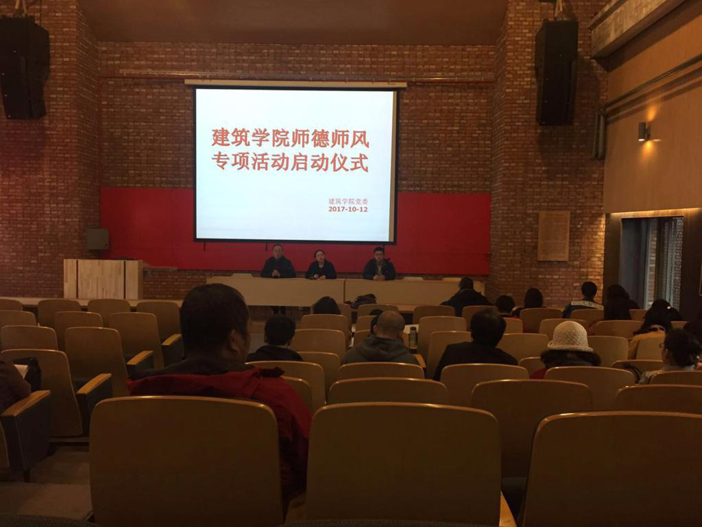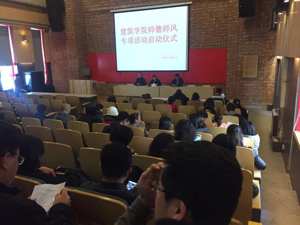 2017年10月12日下午,太阳成集团tyc122ccvip在李大夏报告厅举行 “师德师风”建设专项活动启动仪式。公司党委书记梁岚、经理贾晓浒、许国强以及太阳成集团tyc122ccvip教工等60余人参加启动仪式。会上,党委书记梁岚对公司“师德师风”建设主题教育及员工心中最“好”教师评选活动方案进行了细致的解读。
