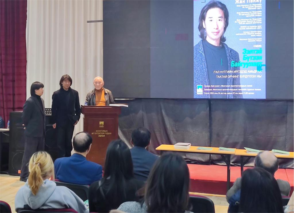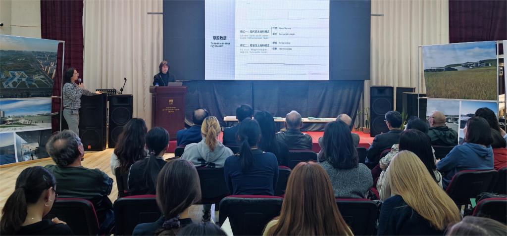 交流期间,张鹏举教授作了以"平实建造:草原人居环境的营造实践"为主题的学术演讲,介绍了有关草原人居环境的研究与实践成果,诠释了针对草原环境的“平实建造”营建理念,并与参会者互动交流;接受了蒙古国功勋建筑师昔日夫先生颁发的蒙古国建筑师协会会员证书,成为了蒙古国建筑师协会自1954年成立以来首位非蒙古国国籍会员。同时,张鹏举教授举办了学术成果和代表作品专题展览活动,该展览将在蒙古国科技大学进行为期两周的巡展。