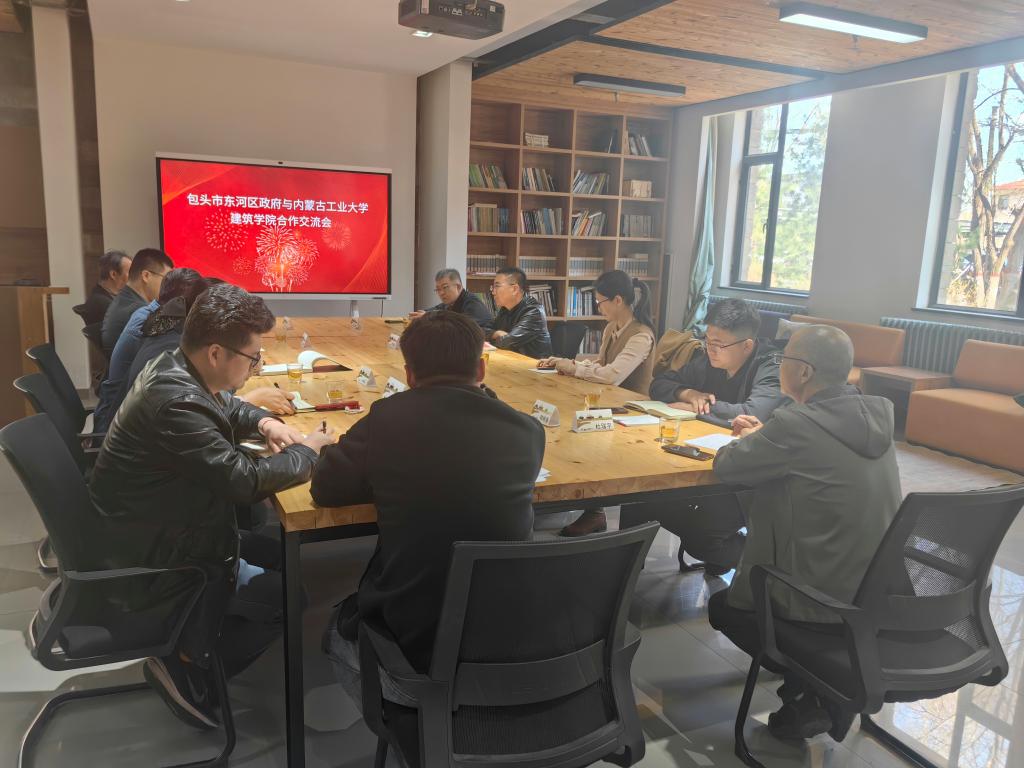 2025年4月14日下午,东河区政府副区长赵瑞军、东河区政府副区长斯日古楞、内蒙古东河文旅发展集团常务副总经理张红亮、东河区政府办公室副主任韩晓春、东河区文体局党组成员杜瑞平一行5人到公司考察交流。太阳成集团tyc122ccvip执行经理许国强、副经理杨俊涛、副经理胡晓海、城乡规划系主任张立恒、环境设计系主任莫日根及相关部门负责人陪同并参加了交流会。