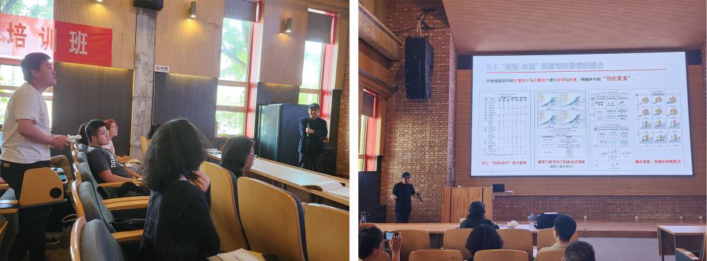 带着这些问题进行思考后,王竹教授开始了今天讲座的主要内容。首先是传统建筑与建筑传统的对比,强调了对传统建筑的不同认知,指出传统建筑的不二法则是新陈代谢;他认为传统是一个流动的概念,在静态和动态的视角下,对传统的认知应该是动态的。接着,王教授分享是如何理解和把握越是民族的就越是世界的概念,以及民族与世界之间的思辨和识别,从而引出了建筑文脉、地域文脉和营建体系的理解。此外,王教授关注人居营建体系的演进与地域基因,强调了地区营建体系是由一方的水土生成,即人居营建的地域基因的重要性。在讲座的后半部分,王竹教授以态度与辨析的出发点,引用了古老的思想实验“忒修斯之船"来探讨同一性问题,并指出要满足结构上的一致性和时间上的连续性两个条件,强调研究和认知传统必须具备敏锐的历史感,把握传统的时代精神,并探讨地区建筑原型的现代意义以及判断原型现代意义的态度。王教授积极关注原型宜居的概念和永续经营,强调人居营建体系的演进机制,探讨人地系统和地区建筑营建的动力要素,以及气候、地貌和人居营建的认知路径,提出原型-永居的地域基因作用。在技术策略方面,王竹教授强调地区营建的适宜性技术,包括地域气候与建筑设计策略、基于人体舒适的生物气候图、传统民居建筑空间组织和构造的智慧,以及建筑技术的材料和构造。强调适应气候和地域要求的设计策略,如四种工作原理的特朗勃墙和采用内庭院的降温设计策略。然后提出被动式设计的靶向策略,即建立地区构造设计学。在策略建构部分,探讨了原型宜居演进的阶次和目标、原型永居的生成和生长、原型永居营建导控要素的整合,以及建立地域基因库和原型永居的转译机制。最后总结了原型永居的营建策略,并强调最终的靶向目标是易用性和普适性。