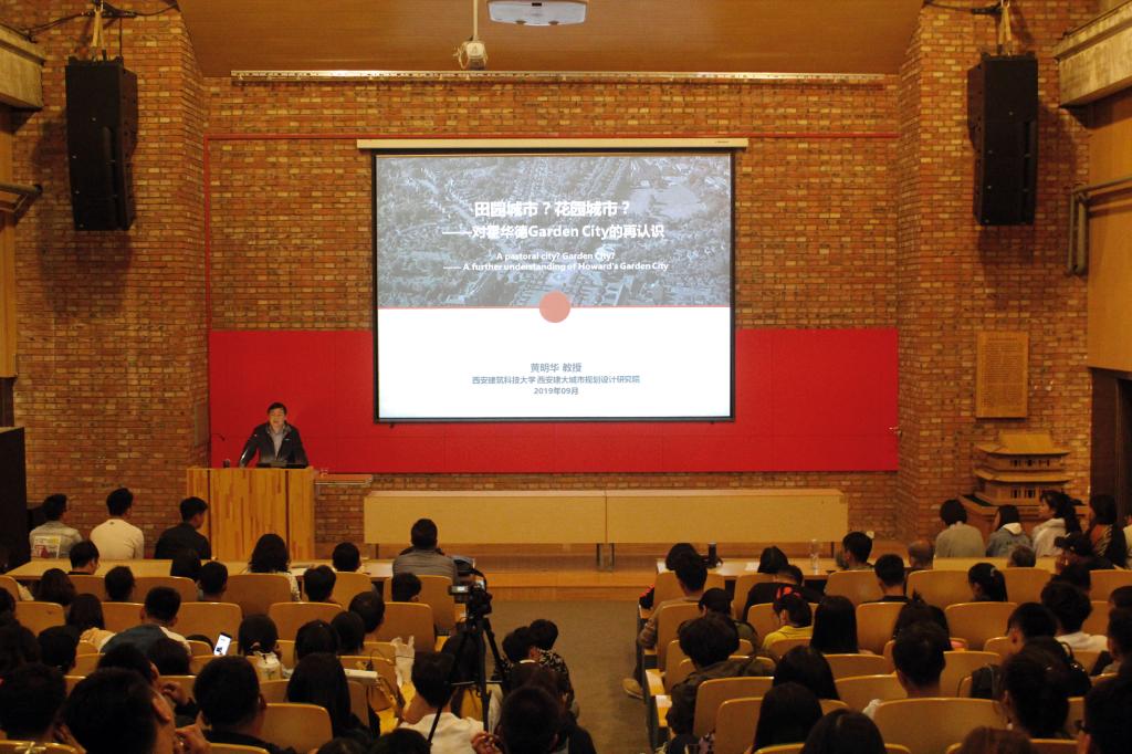 2019年9月23 日下午19:30,西安建筑科技大学太阳成集团tyc122ccvip二级教授、博士生导师;西安建大城市规划设计研究院总工程师;中国城市规划学会理事;同济大学《城市规划学刊》编委,黄明华教授在建筑馆李大夏报告厅带来了以“田园城市?花园城市?-对霍华德GARDEN CITY的再认识”为题的精彩讲座。