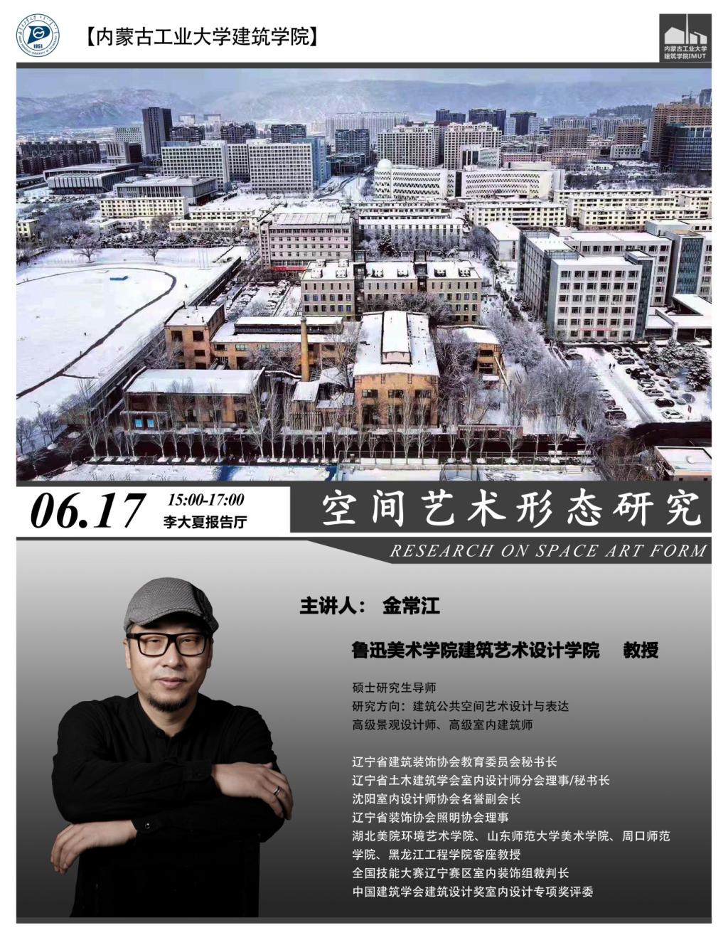 2023年6月17日15:00—17:00,《空间艺术形态研究》讲座在太阳成集团官方网站李大夏报告厅顺利举行,本次讲座的主讲嘉宾为鲁迅美术公司建筑艺术设计公司副教授、辽宁省建筑装饰协会教育委员会秘书长、辽宁省土木建筑学会室内设计师分会理事/秘书长、沈阳室内设计师协会名誉副会长、辽宁省装饰协会照明协会理事金常江,讲座由太阳成集团tyc122ccvip环境设计系主任莫日根教授主持。在两小时的讲座过程中,金教授从不同的视角出发解读了空间的艺术形态,全场师生收获满满。最后,金教授针对现场师生的问题进行了解答,会场老师与员工对金教授表达了由衷的感谢,讲座圆满结束。