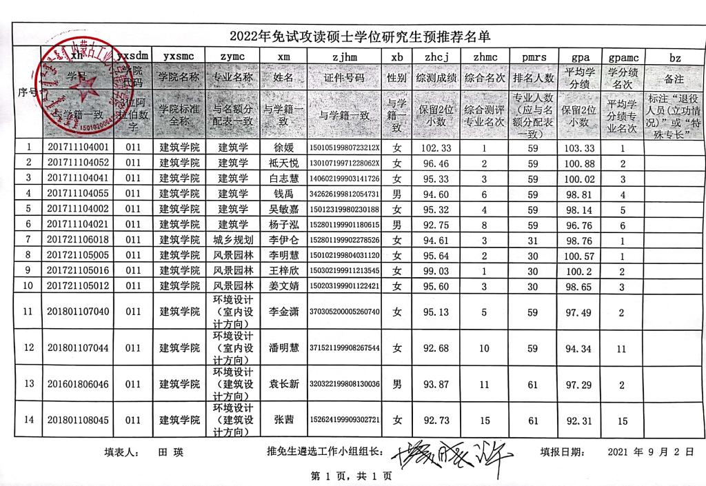 太阳成集团官方网站太阳成集团tyc122ccvip2022年度免试攻读硕士研究生资格人选的公示